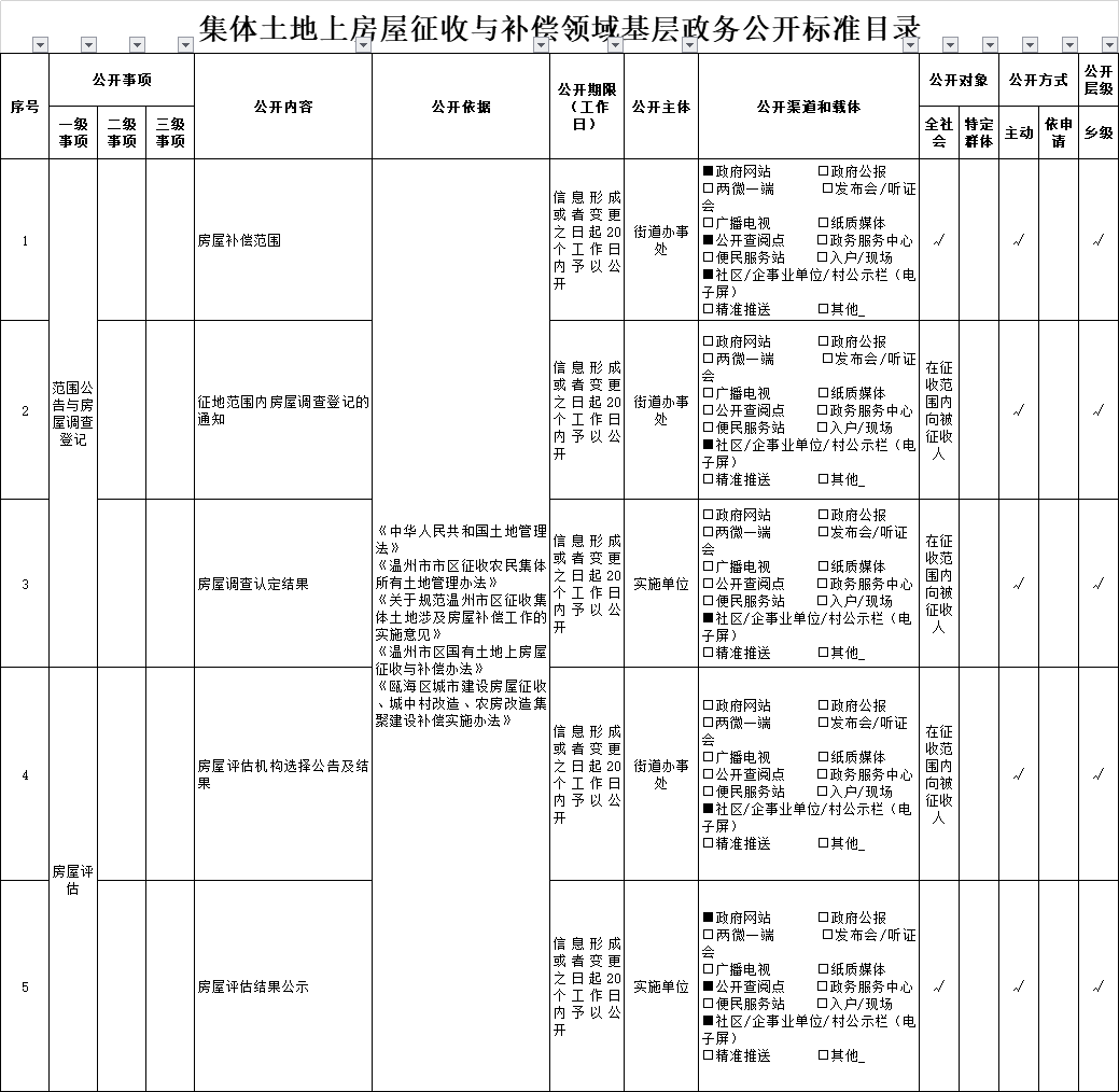 鄉鎮級政務公開事項標準目錄(梧田街道)