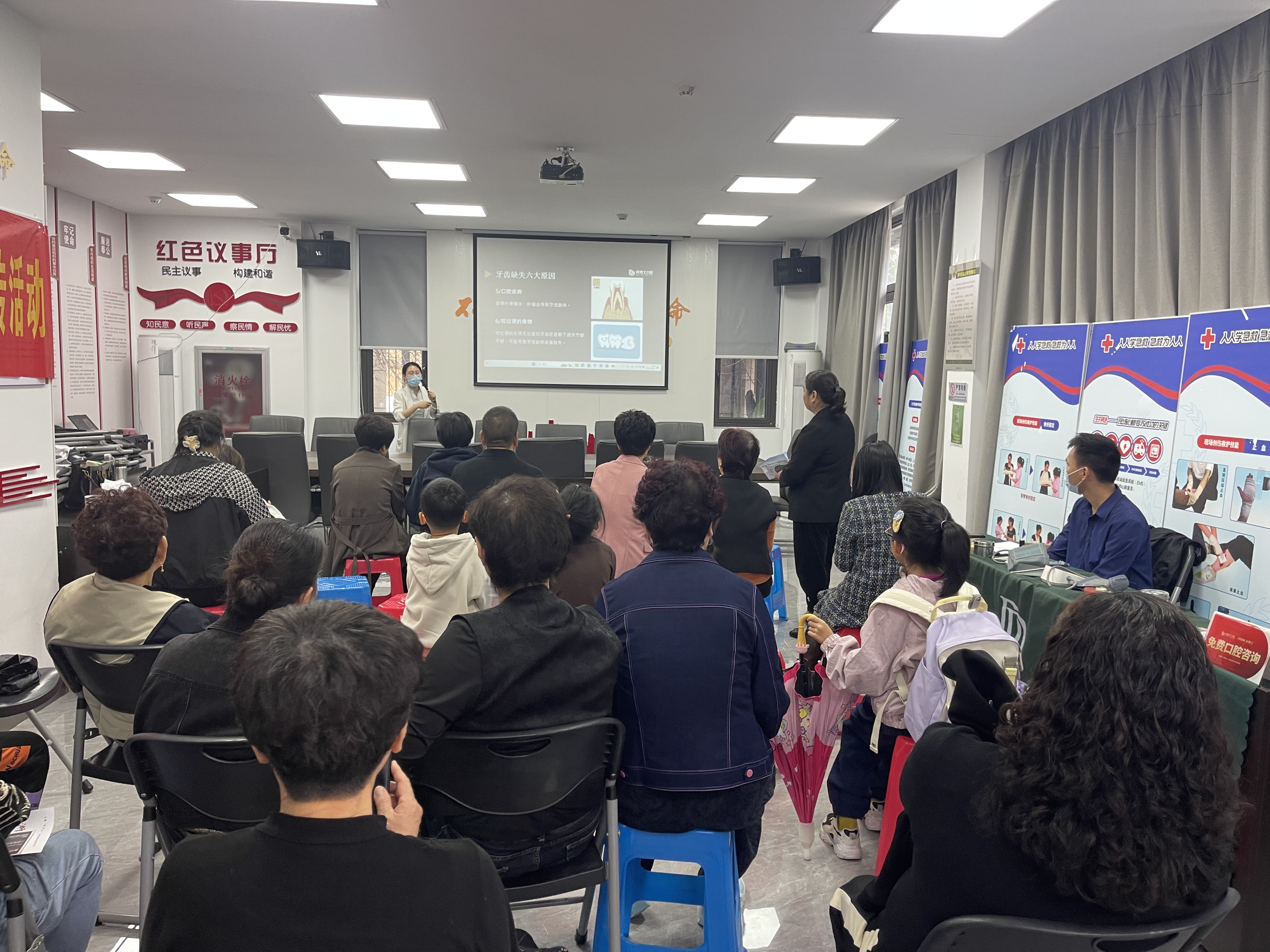 為幫助居民樹立正確的口腔健康意識,助力健全轄區醫療服務體系,讓優質的醫療服務走近家門口,11月11日上午,梧田街道朝霞社區聯合牙博士口腔醫院開展“一老一小·明眸皓齒”口腔檢查公益活動,共有30余名老人和小孩參與此次活動。