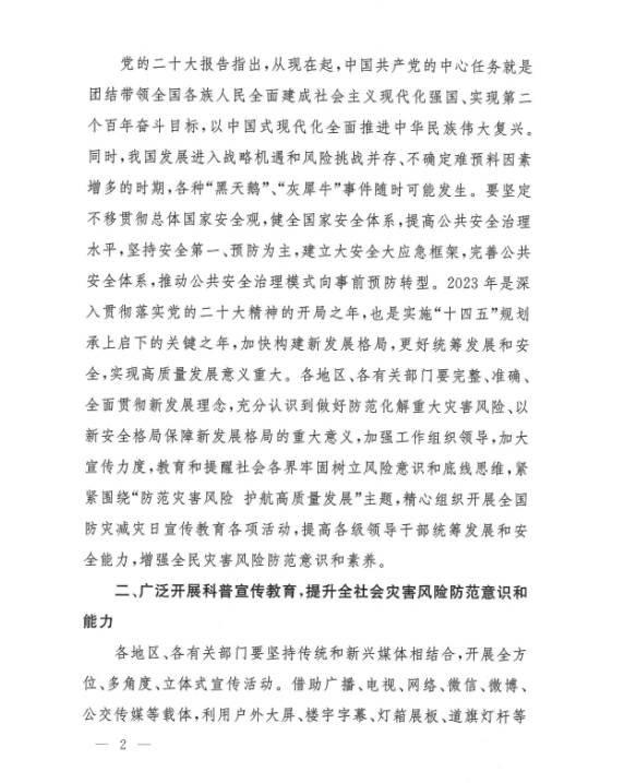 現將《國家減災委員會辦公室關于做好2023年全國防災減災日有關工作的通知》(國減辦發〔2023〕5號)轉發給你們,并提出如下要求,請一并抓好落實。