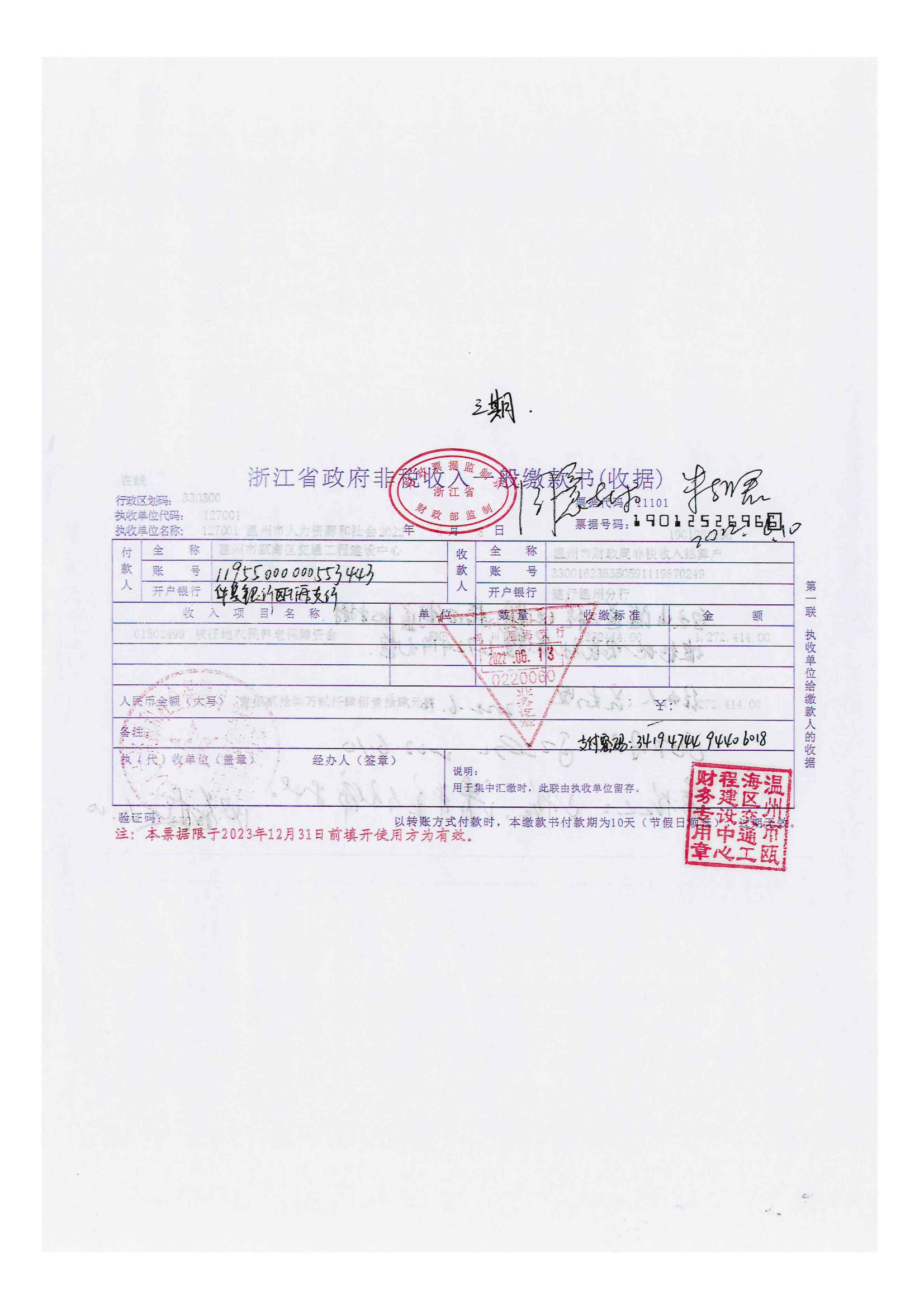 梧田街道北村村 溫州市南環(huán)線(xiàn)白云山隧道工程三期--溫甌土征核[2023]28號(hào)發(fā)票4.jpg梧田街道北村村 溫州市南環(huán)線(xiàn)白云山隧道工程三期--溫甌土征核[2023]28號(hào)發(fā)票3.jpg