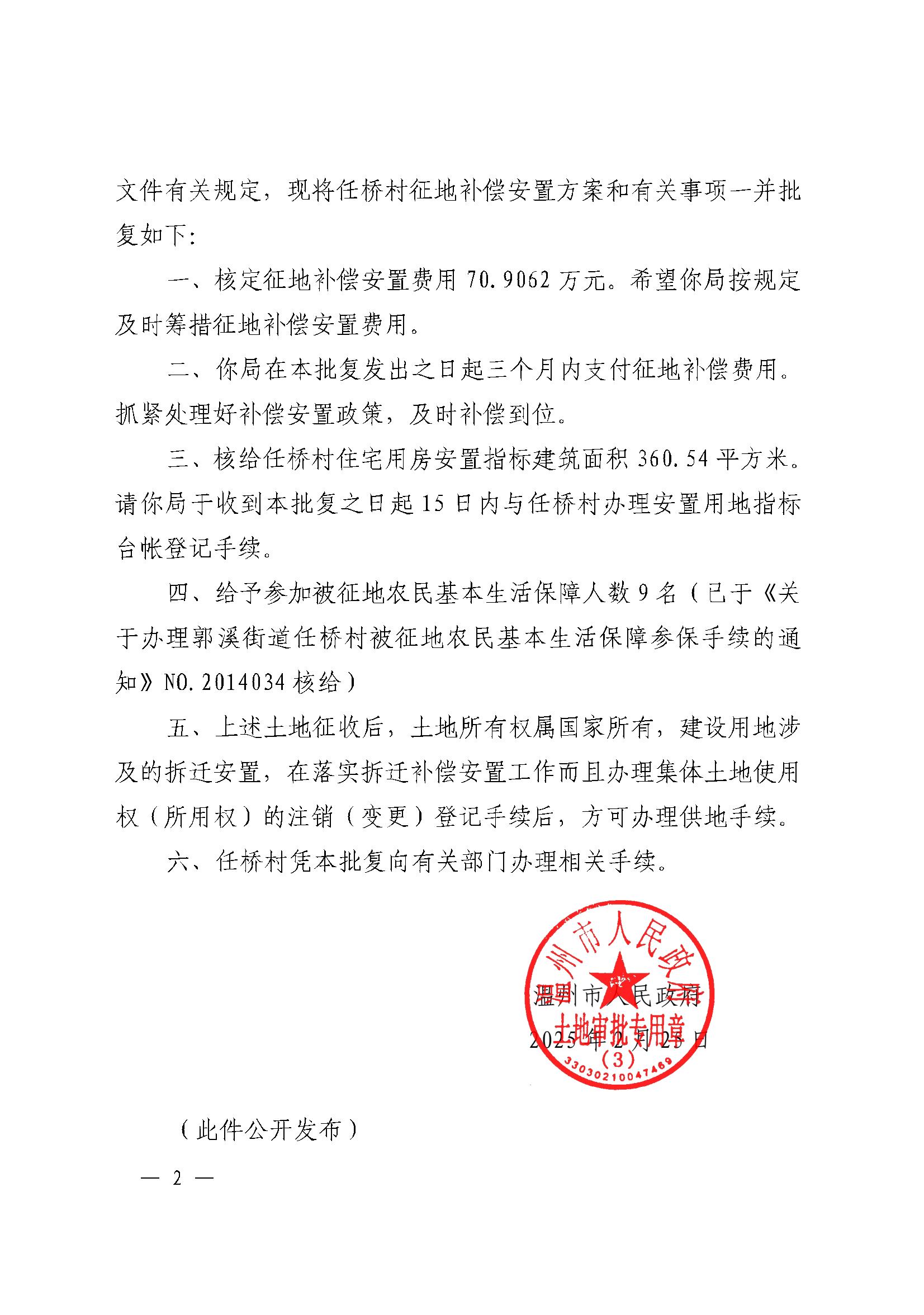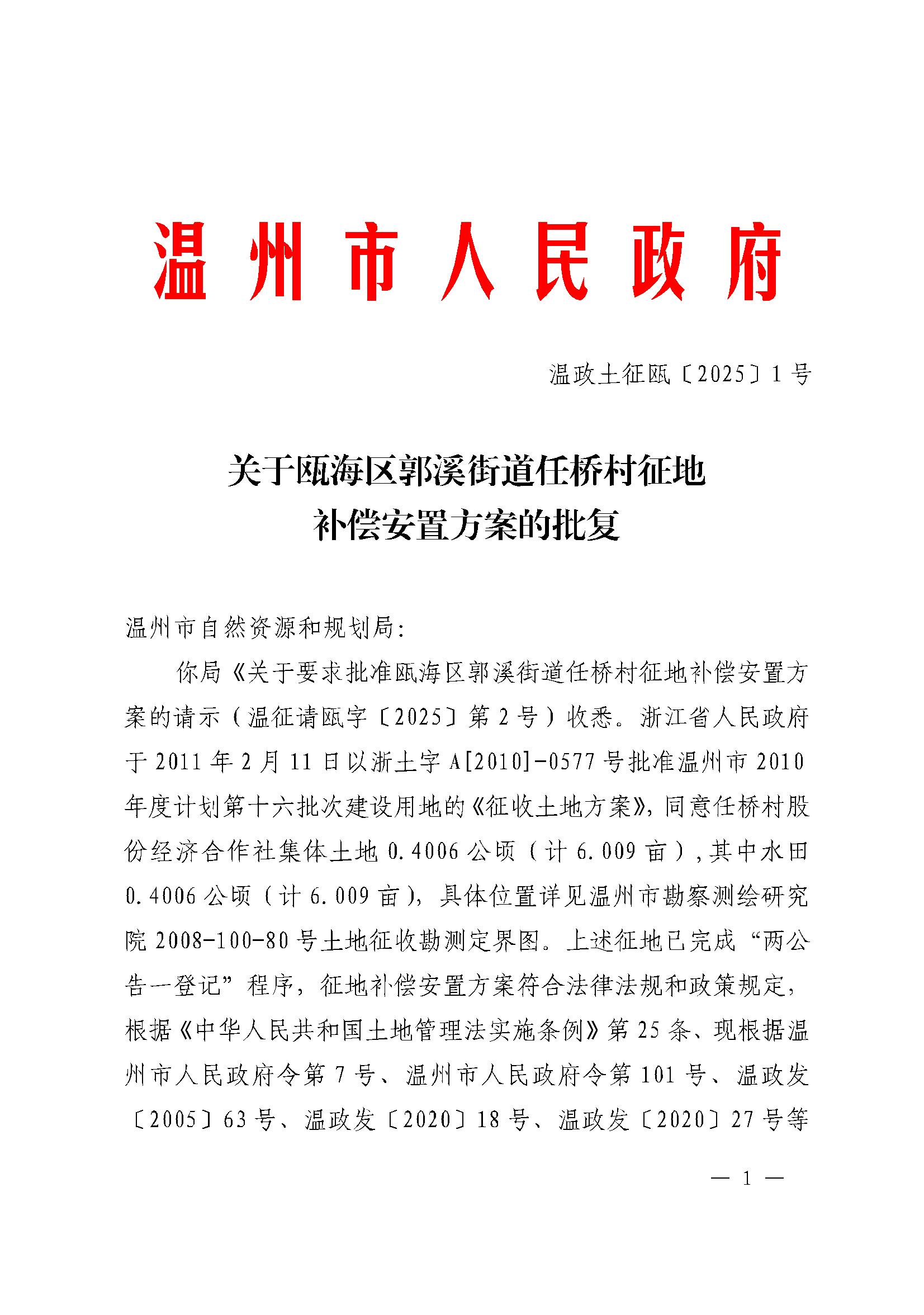 關于甌海區郭溪街道任橋村征地補償安置方案的批復.pdf